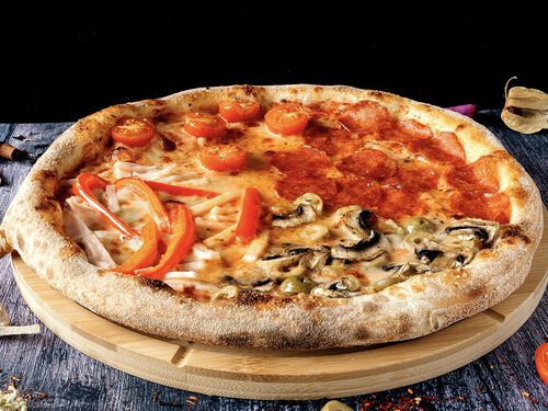 Ароматное тесто, покрытое томатным соусом, идеально сочетается с нежной моцареллой, аппетитной ветчиной и слегка островатой пепперони. Грибной микс из опят и шампиньонов добавляет свежести, а соленые огурчики завершают это вкусовое путешествие (30 см)